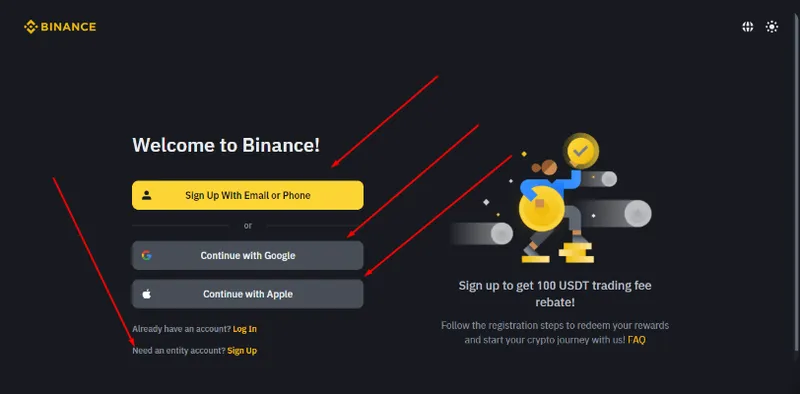 1. 바이낸스 거래소 공식 사이트 또는 모바일 앱에 접속합니다.