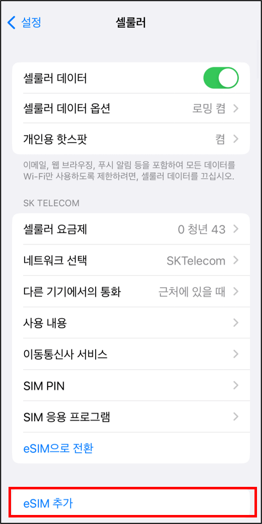 3. esim 아이폰 설치 및 활성화 방법